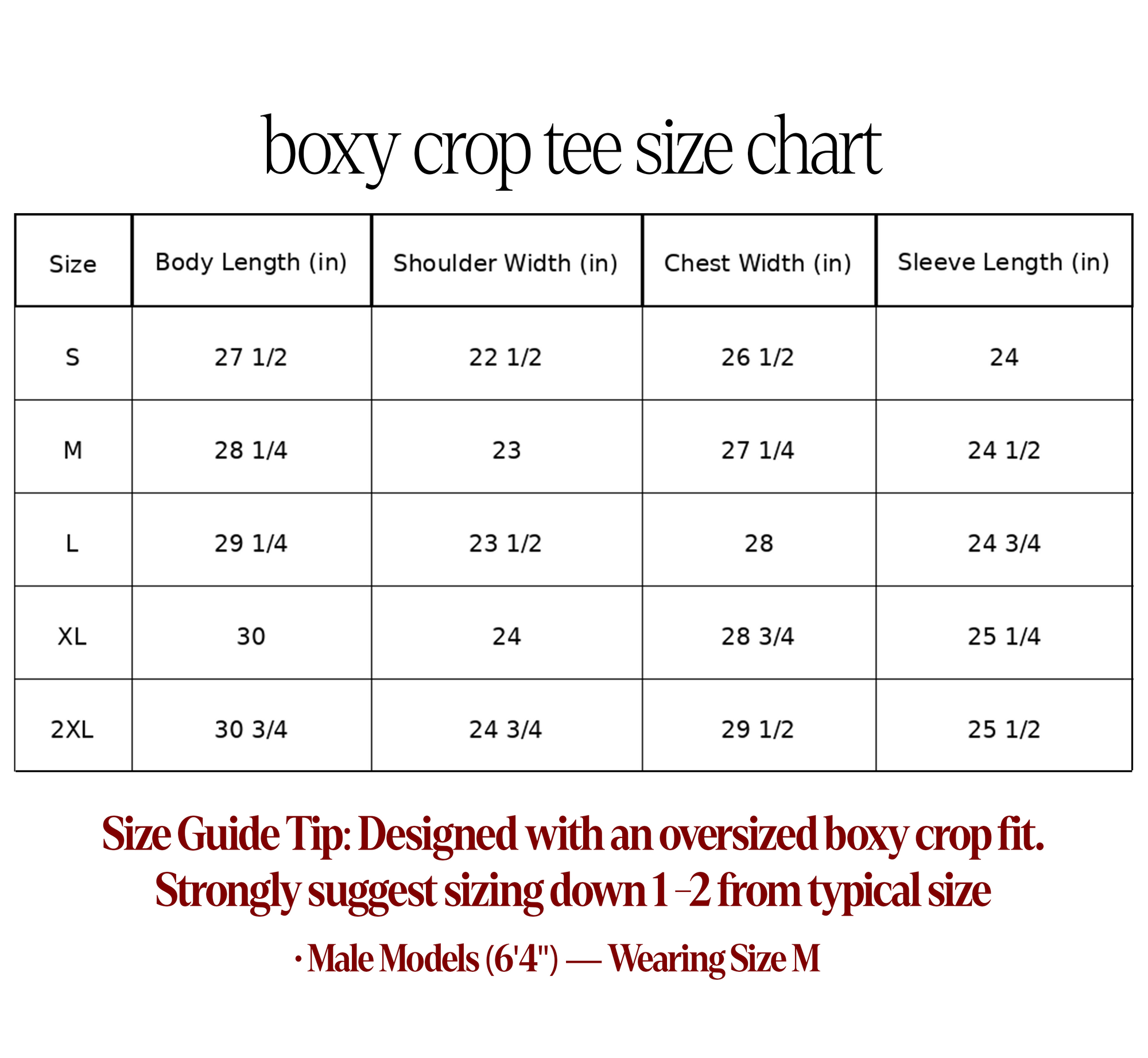 - Oversized Boxy Crop Fit; Recommend Sizing Down 1-2 Sizes